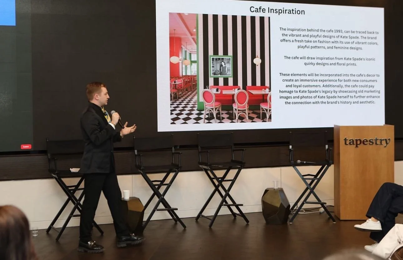 A standout moment in my graduate journey was placing 3rd in the Kate Spade x WindowsWear competition, where I competed against hundreds of students from leading institutions worldwide. Presenting my work at the Tapestry headquarters was both an honor and a defining milestone, reinforcing my passion for merging creativity with brand storytelling in a luxury retail context.